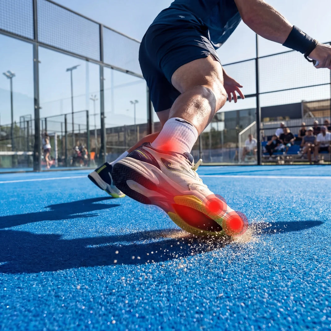Vos semelles vous trahissent. Elles sont conçues pour la course à pied, pas pour le padel. Elles ne tiennent pas compte de vos pivots, de votre soutien latéral et de vos démarrages explosifs.